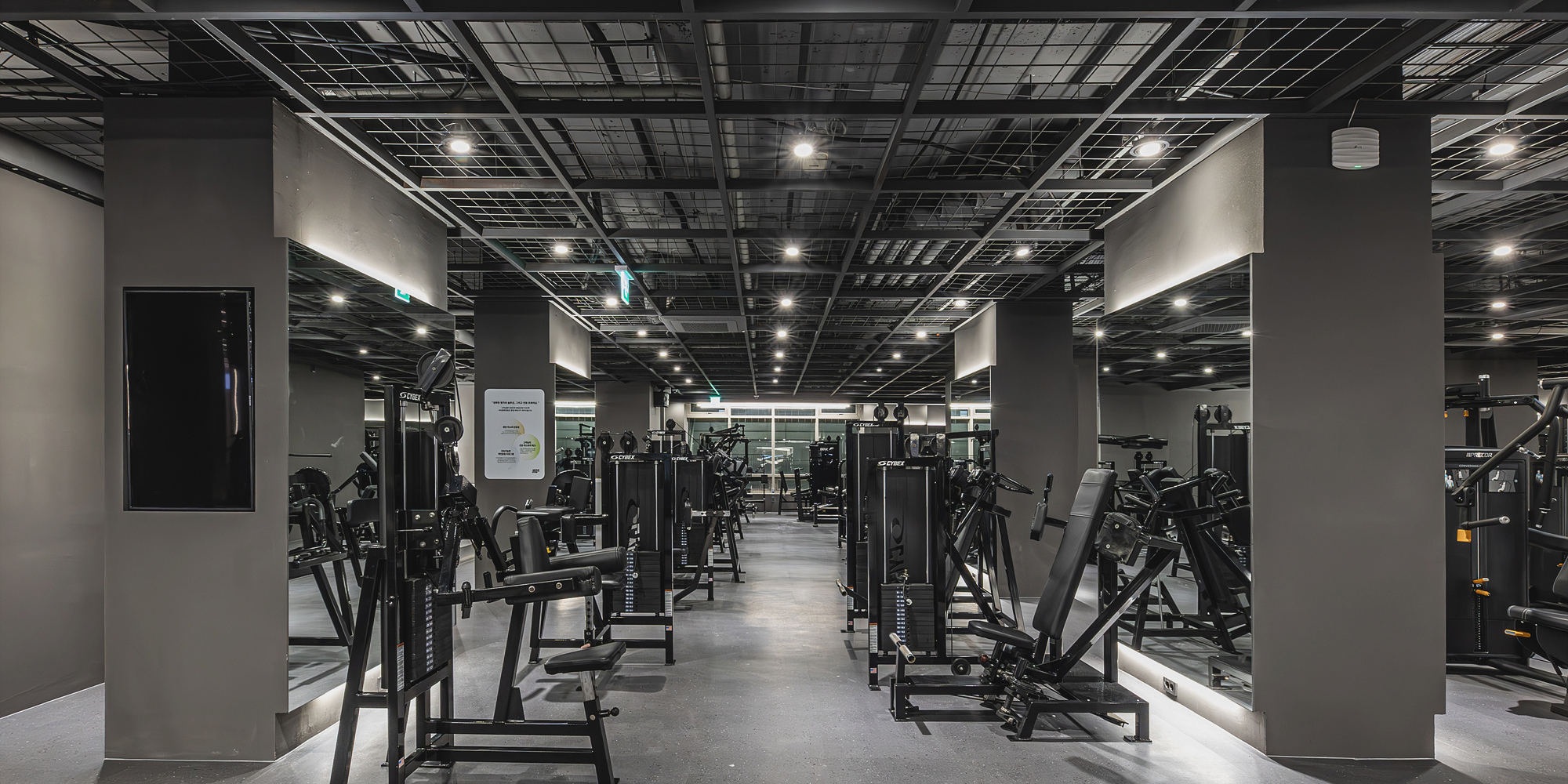 [헬스장] 블랙 모노톤으로 빈티지하지만 깔끔한 피트니스 인테리어